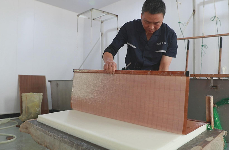 徽州傳統(tǒng)手工楮皮紙,采用傳統(tǒng)手工抄紙工藝,經(jīng)過(guò)27道工序,以手工精細(xì)制作而成,產(chǎn)品主要有楮皮紙、云龍紙、皺紋紙、落水紙、棉紙、版畫、攝影畫、手撕畫專用紙。