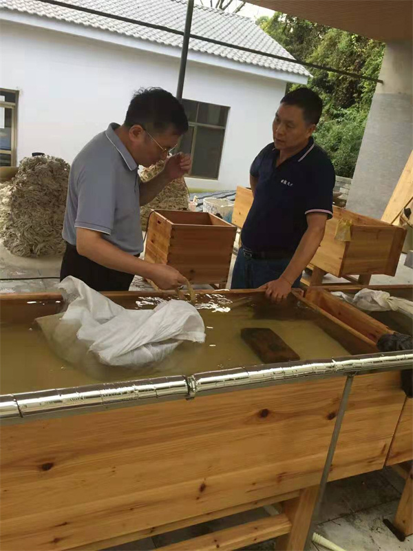 2021年8月27日,中科大湯書昆院長再一次對我公司徽州楮皮紙恢復(fù)工藝做指導(dǎo)。
