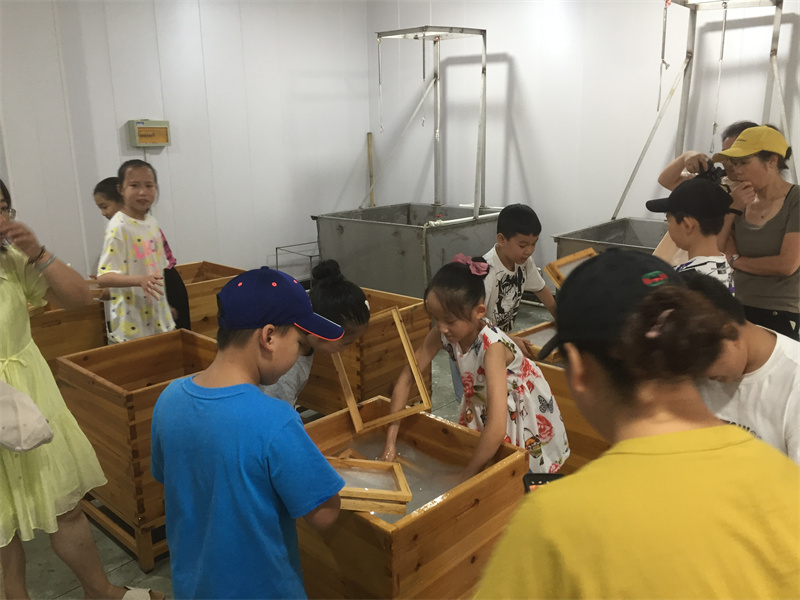 2021年8月28日,暑假的結(jié)尾,再來一波研學(xué)體驗,小朋友們學(xué)習(xí)如何撈紙,在實(shí)踐中體驗紙的生產(chǎn)不易,學(xué)會珍惜愛護(hù)用紙